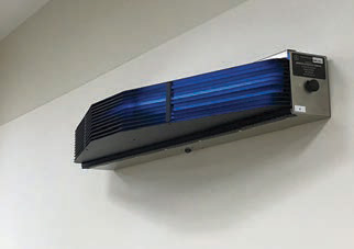 El paquete de montaje fijo de UVC proporciona una cobertura total y completa. Las áreas sombreadas se minimizan o eliminan, y solo se requiere un ciclo para una desinfección completa.
